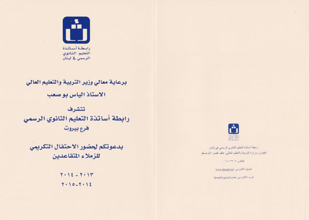 دعوة لحضور الإحتفال التكريمي للأساتذة المُتقاعدين برعاية الوزير أبو صعب