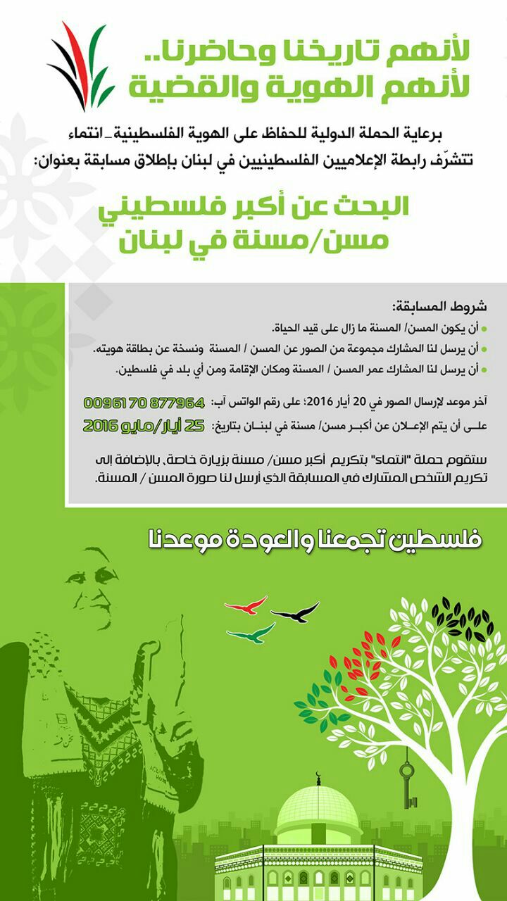 تتشرف رابطة الإعلاميين الفلسطينيين في لبنان بإطلاق مسابقة بعنوان: